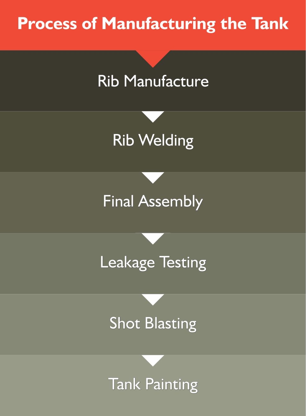 • Tanks are Shot Blasted to get a surface finish, coated with zinc rich primer and then painted.
